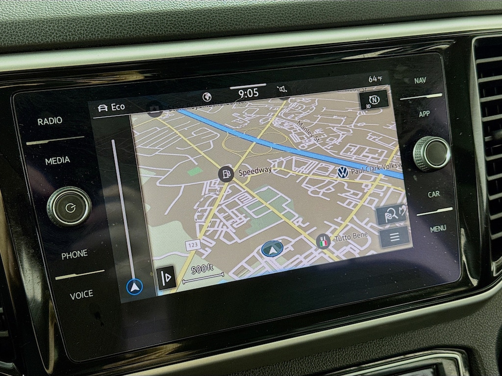 The Atlas has an infotainment system that is easy to use and intuitive, and it allows for swiping and pinch zooming. Apple Car Play is awesome! Surprisingly, some manufacturers have not integrated this feature at this time. The digital instrument panel has a very nice, modern look, and it offers 5 or 6 different views. One of the really cool things about the Atlas- you can display the nav map in the middle of the instrument panel. Additionally, you can make the map bigger and the gauges smaller, which allows you to see more map detail- a really nice option. The car even has an altimeter, which is really cool to me (I’m a pilot by trade). Not so much for my wife…